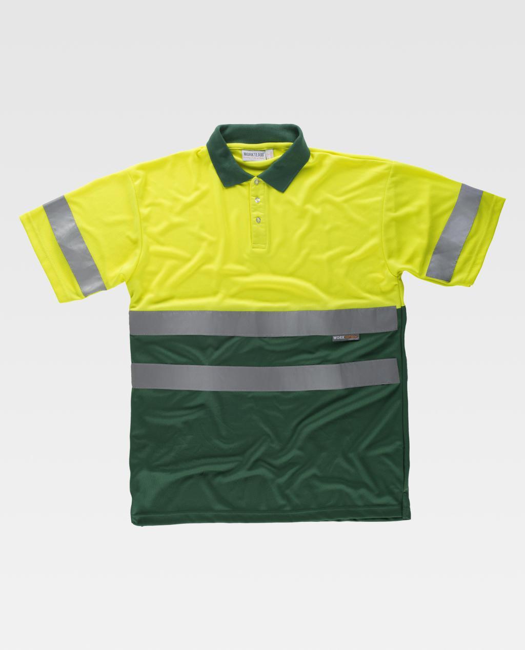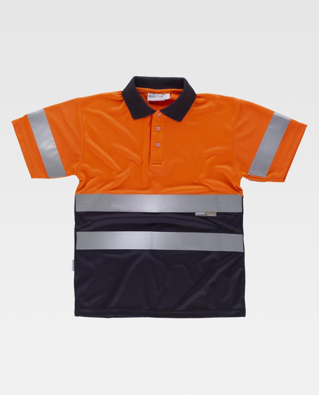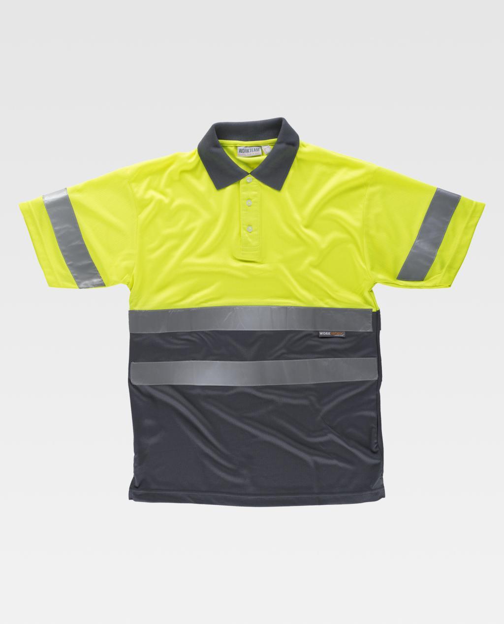 Pólo combinado de manga curta em poliéster bird's eye com faixas refletoras.