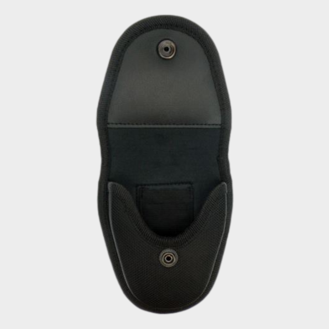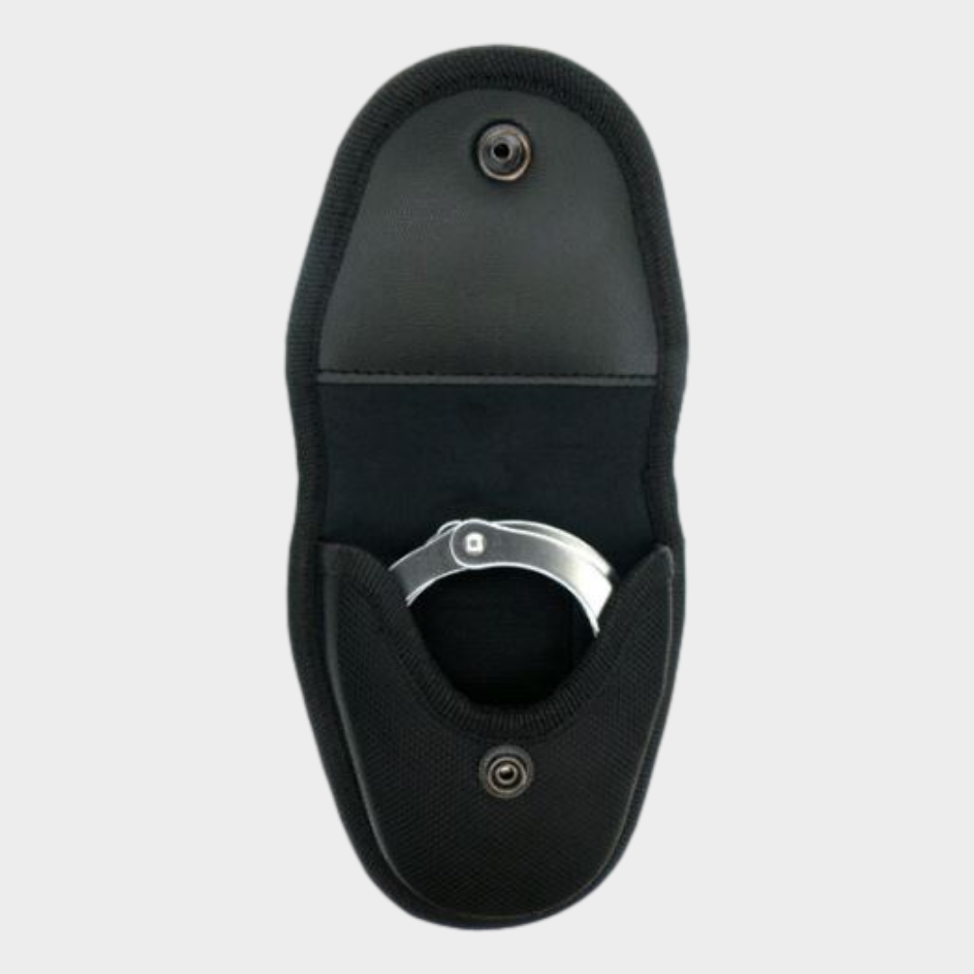 O suporte é designado para a maioria dos tipos de algemas metálicas usadas. É feito de nylon de alta resistência e leve. Na parte traseira é equipado com clipe metálico, que permite a sua rápida inserção no cinto (sem necessidade de desamarrá-lo) ou no colete tático. Pode ser fixado alternativamente também no sistema M.O.L.L.E. Além disso, dentro do suporte existe uma pequena bolsa para as chaves sobresselentes.