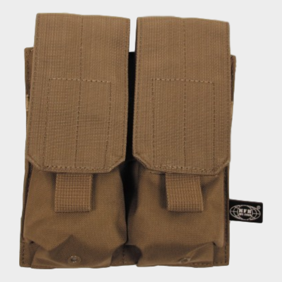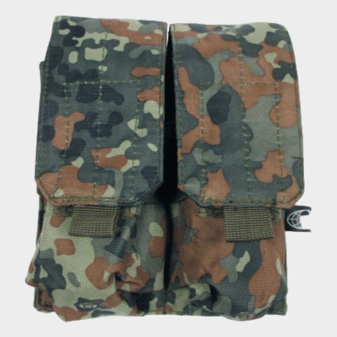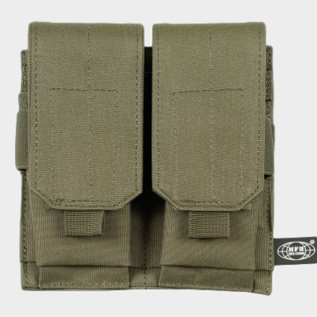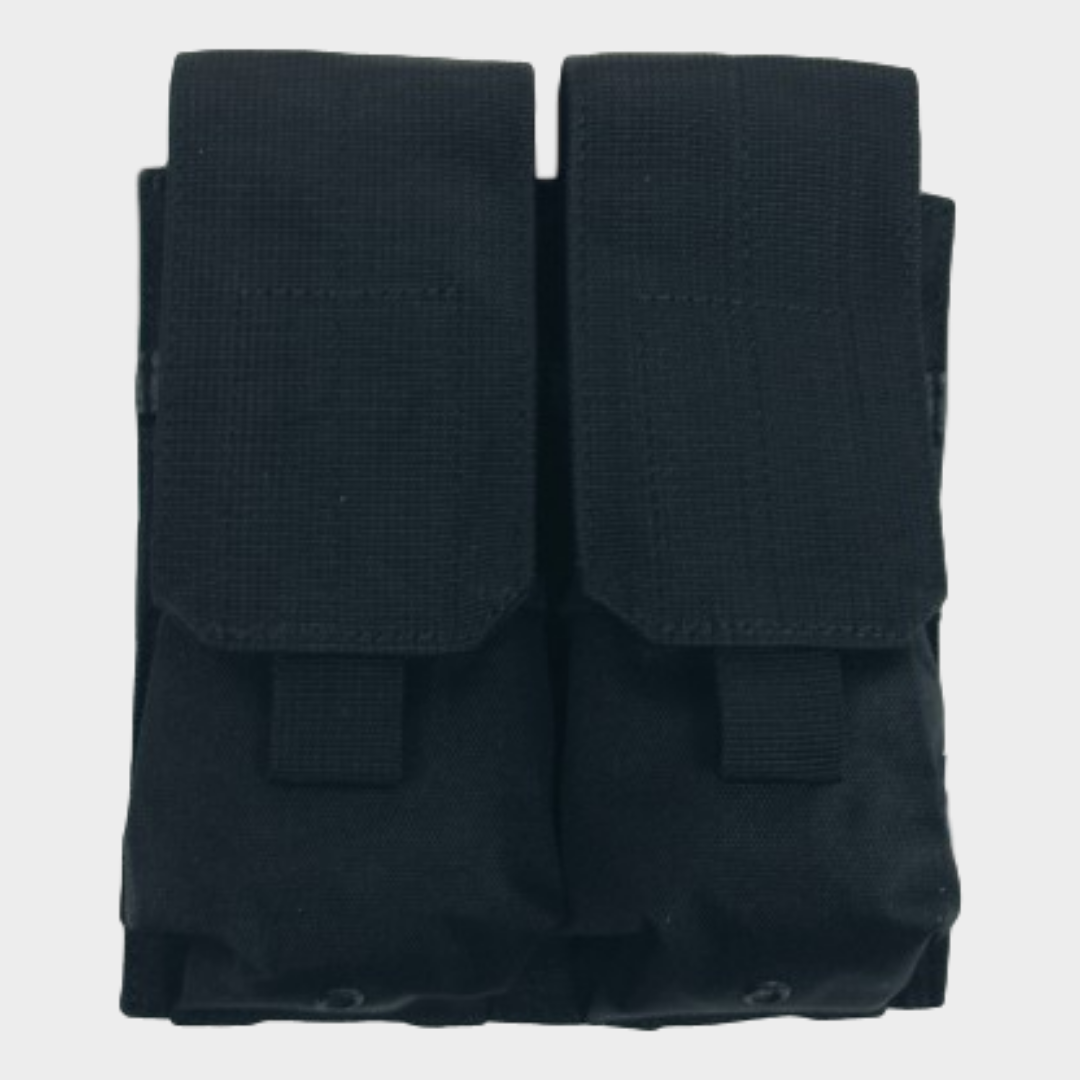 Porta Carregador duplo com ajuste de pressão através do velcro, laterais em elástico para um melhor "grip". Com sistema molle para uma fixação simples em qualquer sistema compatível.
