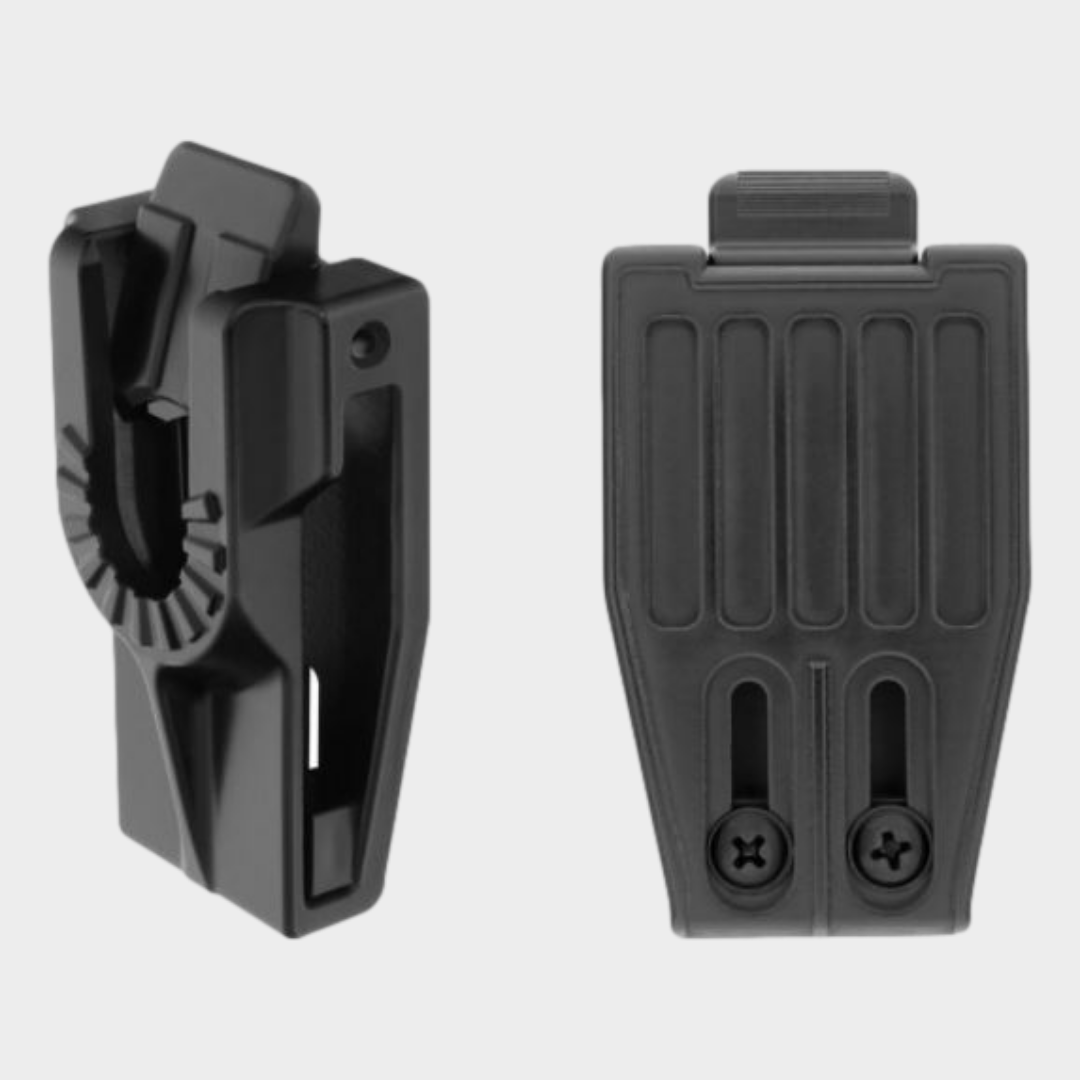 O encaixe no cinto pode ser sempre ajustado que varia entre 32mm aos 60mm. O suporte pode ser girado em relação ao cinto por um círculo completo de 360 graus com 16 posições diferentes.