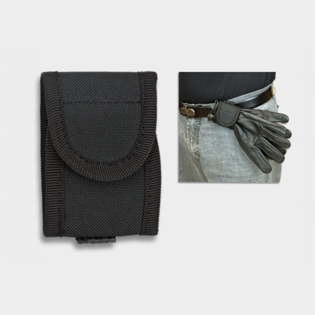 Porta Luvas em nylon com sistema de aperto em velcro, para posição horizontal.