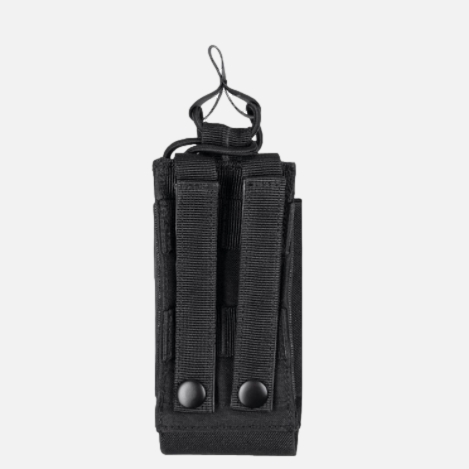 Porta rádios universal flexível, com sistema Molle na parte de trás, para uma fixação simples e segura. Adapta-se a diferentes tamanhos de rádios devido ás paredes laterais feitas de elástico.