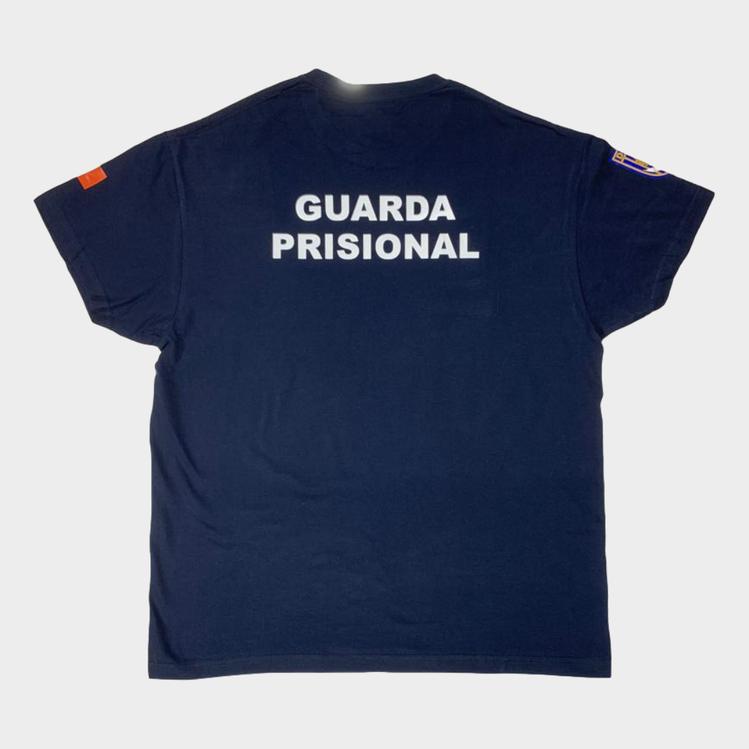 T-shirt Guarda Prisional com estampagens dos símbolos nos braços, peito e costas. Com acréscimo de velcro para colocação de divisa e nome.