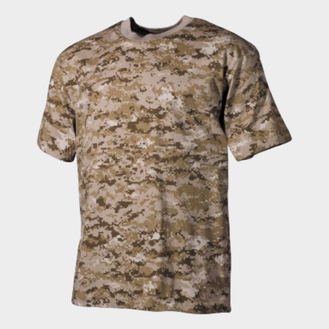 T-shirt MFH SKU: 00104A Militar › Vestuário Vestuário › T-Shirts 11,99 € IVA incluído Partilhar Cor DigitalDesert DigitalUrban DigitalWoodland NightCamo HDT-Camo DPMCamo HDTCamoLE CombatCamo OperationCamo SKCamo Tamanho XS S M L XL XXL Quantidade Comprar Contactar Descrição: T-shirt manga curta estilo militar 100% algodão com tecido "reactive dye".Altamente reforçada com vários camuflados e cores disponíveis. Marca MAX FUCHS