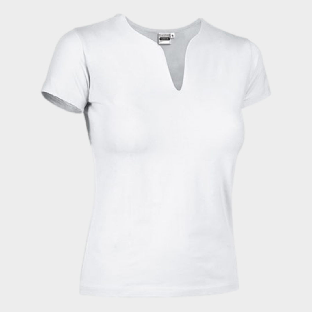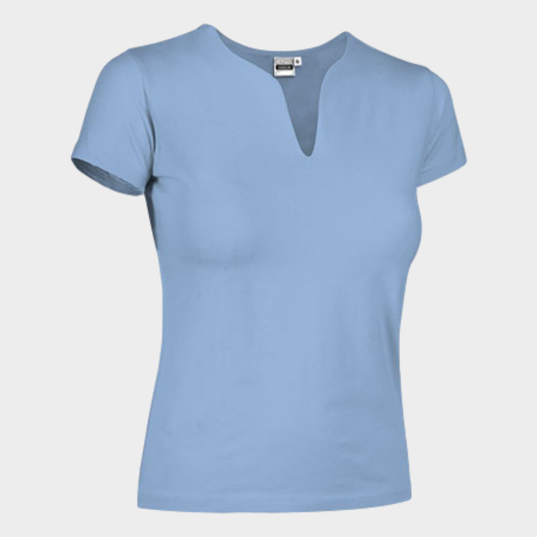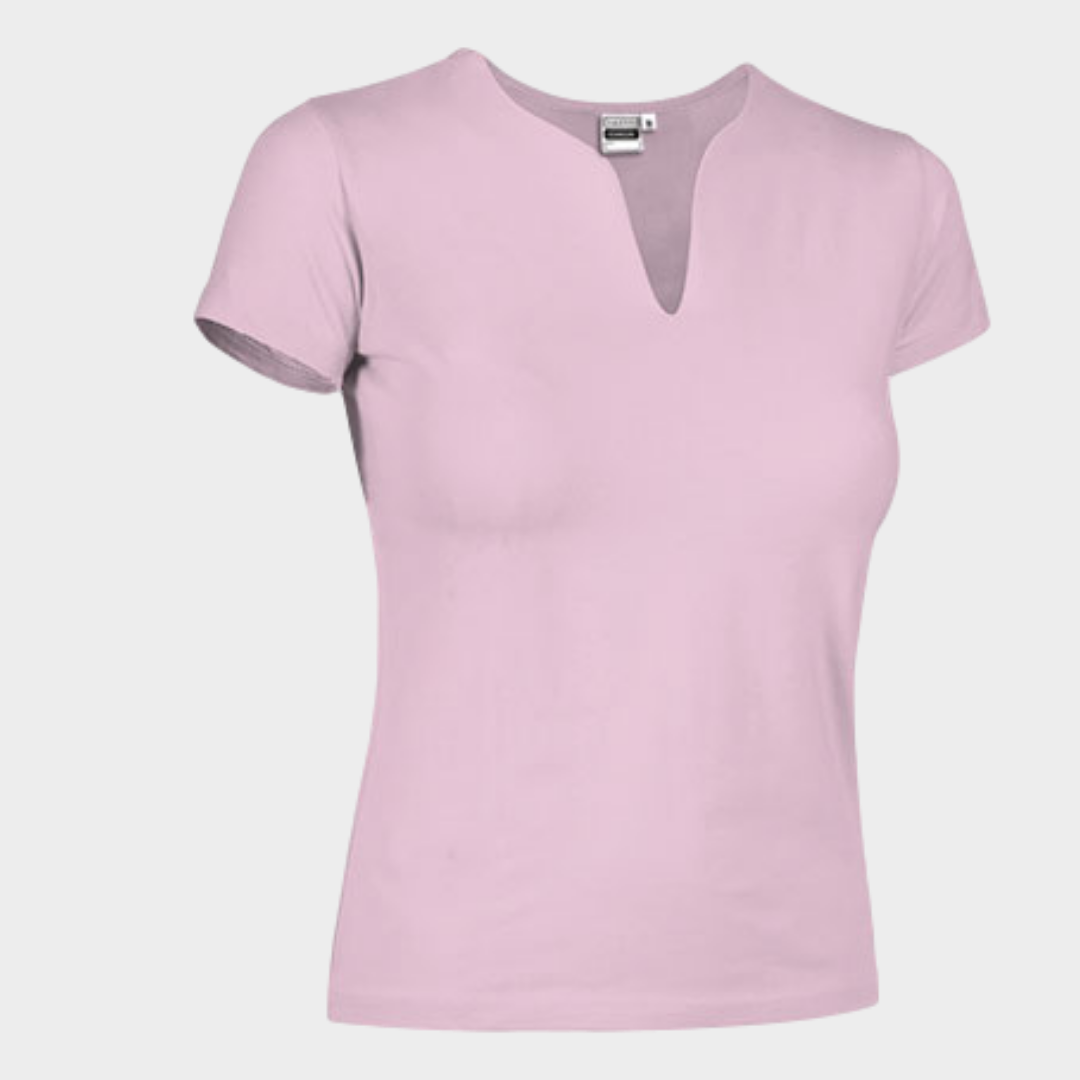 T-shirt manga curta lisa com decote em "V".