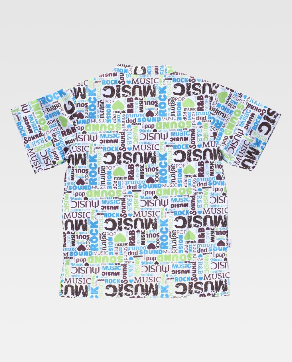 Túnica unissex de manga curta com impresso de 'music' e acabamento anti-nódoas.
