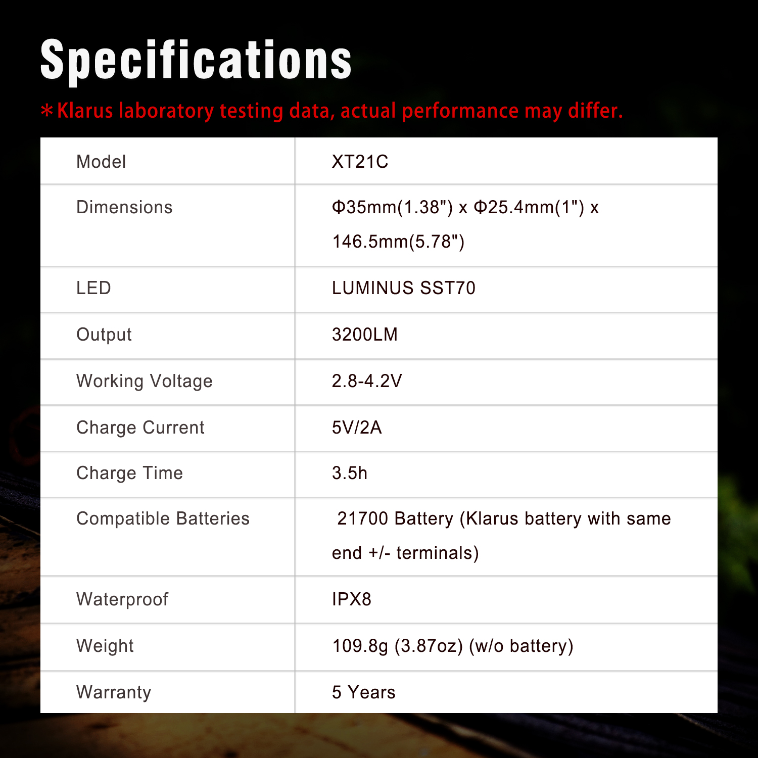 Powered by 5000mAh 21700 Li-ion battery, longer runtime and more brightness.